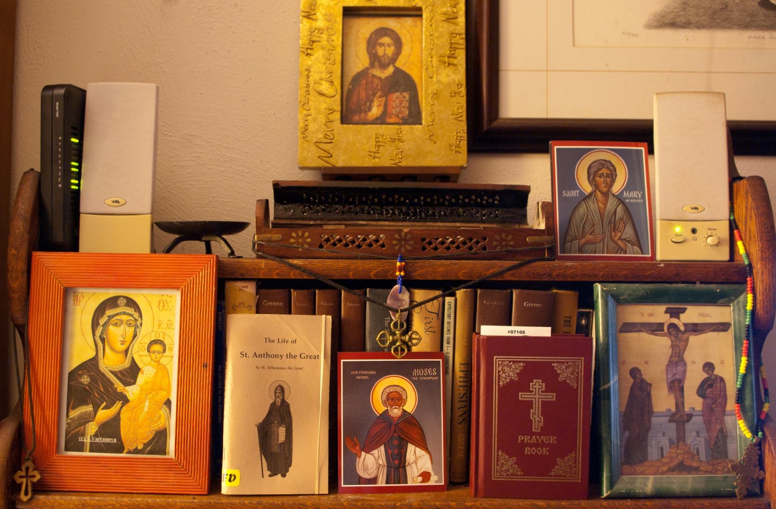 In the Orthodox tradition, a corner of the home (one facing east) is designated a place for prayer. A table with a Bible, cross, and an icon are all that is needed to set this place apart from the rest of the home. One need not be elaborate. Use what is needed so that when anyone sees it, they will sense it is a holy place.